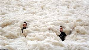 La foto de ¿Australia? es impresionante. Lo que nadie dice que esa espuma no es por las olas, es CONTAMINACIÓN, materia orgánica, productos químicos...mierda, en una palabra. Esa misma espuma en menor medida,claro,escupe el Mar Menor. Pero los ecologistas y los verdes ¿ dónde están?. Un beso, querida Checha.